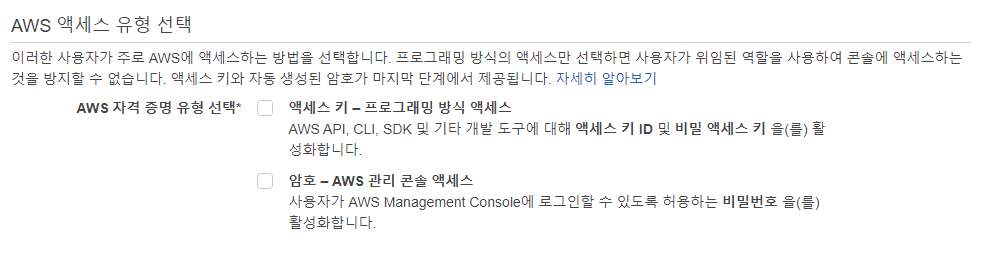 IAM AWS 자격 증명 유형에는 2가지가 있다. 액세스 키를 사용하는 프로그래밍 방식 액세스, 암호를 사용하는 AWS 관리 콘솔 액세스 앞으로 각각 키 방식, 암호 방식이라고 부르겠다.