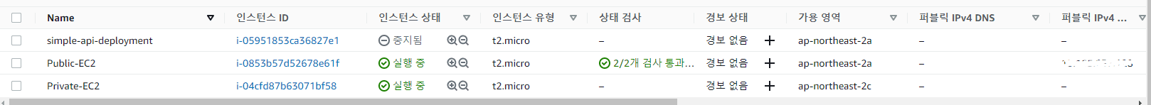 Private-EC2의 네트워크를 확인해보면 퍼플릭 아이피가 부여되지 않은 것을 확인할 수 있다.