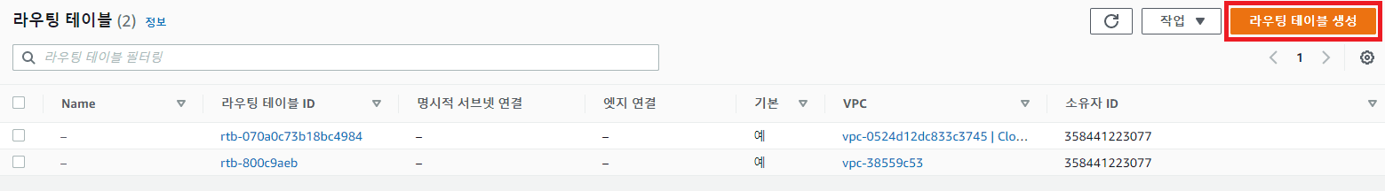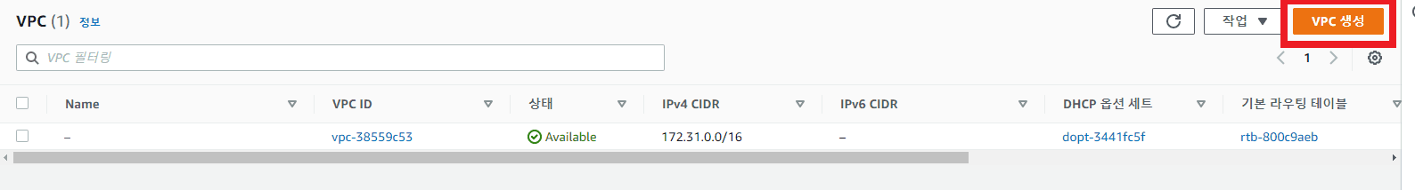 3. 생성 확인 *나중에 기본 VPC와 사용자 VPC를 구분할때 Name Tag의 유무를 확인할 수 있음