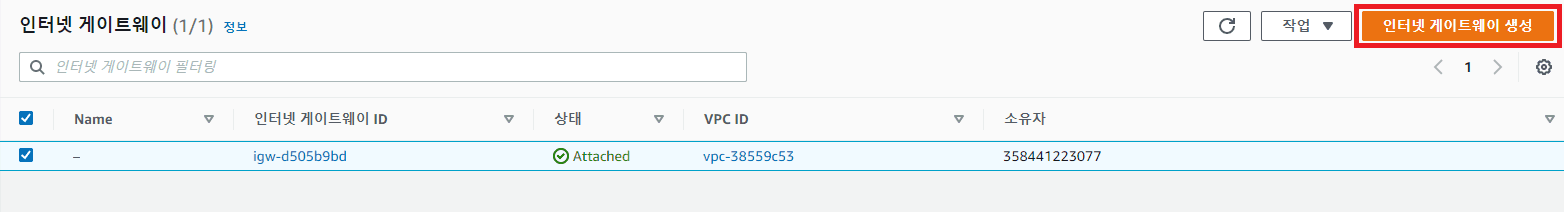 1. VPC Console 접속 -> 인터넷 게이트웨이