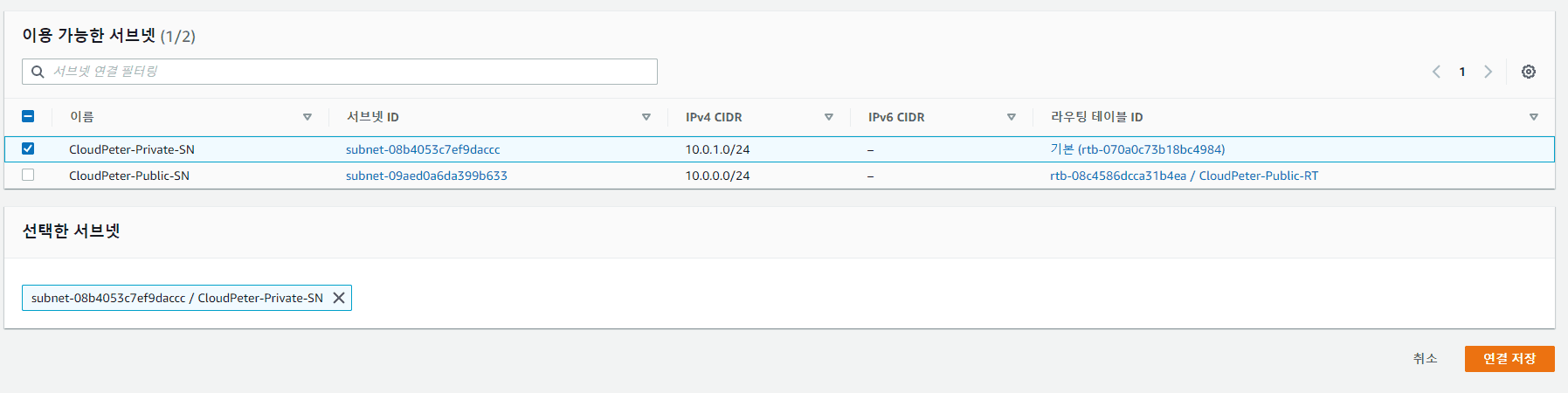 5. 프라이빗 서브넷 (CloudPeter-Private-SN) 선택
